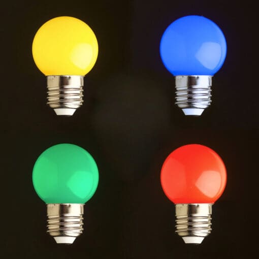 The G45 1W Small Round Coloured LED Festoon Light Globe is a great party festoon light bulb perfect for Xmas or other occasions. These globes with their frosted PVC coating give off a coloured glow (Red / Green / Yellow / Blue) and a great all rounder that packs a punch.